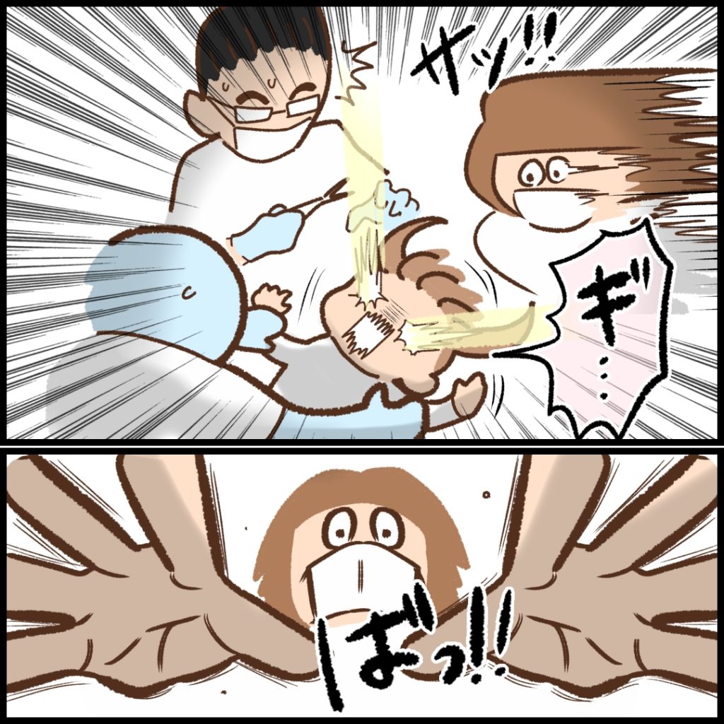 チクッとなって全力暴れモードに入る三女をなんとか制止